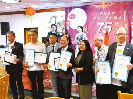 為慶祝中華傳統佳節中秋節及中華人民共和國成立75週年慶,洛杉磯華埠大聯盟9月12日在華埠金龍大酒家隆重舉辦雙節慶祝活動。當日,新、老僑團逾400嘉賓齊聚一堂,共慶美好時刻。同時,現場還為華埠國泰老人大廈的長者們贈送中秋月餅及水果。