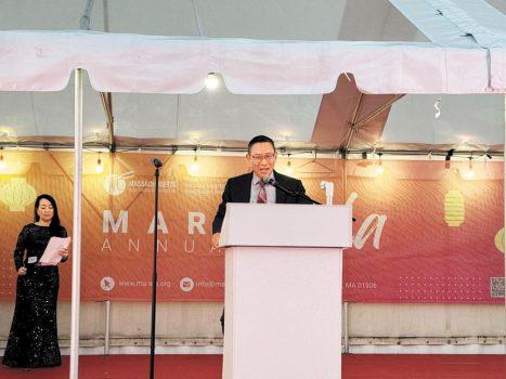 10日,麻州亞裔餐飲協會(MARA)第四節年會在波士頓近郊九龍酒家成功舉辦。晚會邀請包括麻州州長衛隊軍官、前中華公所主席阮洪燦先生,協會創始人陳素描女士,協會共同創始人、亞美聯誼會長潘飛先生,及數百位餐飲、銀行金融業代表到場參與。協會聯席總裁鄺炎斌先生、麻州眾議員陳德基、霍華德,州審計長迪佐里奧、亞裔美國人委員會委員俞國梁、麻州餐飲協會主席克拉克等嘉賓先後發表講話。