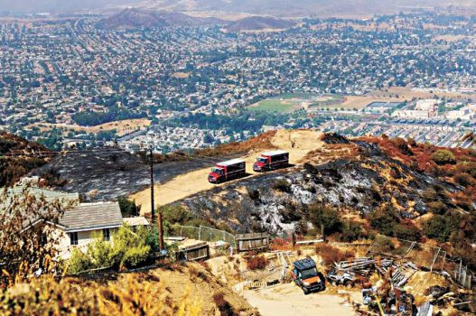《洛杉磯時報》報道,週五,破壞天使國家森林和聖伯納丁諾國家森林的「大橋山火」控制範圍擴大至3%,消防人員仍無法控制週邊區域。超過五千棟建築物受到火災威脅,數十棟建築物遭摧毀。