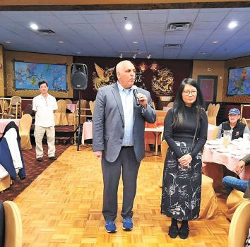 應邀前來參加茶會的波士頓市議員費連(Ed Flynn)及紐英崙中華公所主席雷國輝向台山鄉親聯誼會鄉親致中秋的祝賀和問候。費連議員致詞時還從19世紀台山人參加修築美國太平洋大鐵路的歷史,講到現在台山移民對美國社會的貢獻,稱讚台山人勤勞的美德。