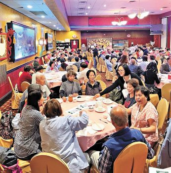 10日早上,波士頓唐人街著名的帝苑大酒樓早上茶市人頭湧動,熙熙攘攘,近200位波士頓台山聯誼會的會員在這裡舉辦鄉親共慶中秋茶會。台山鄉親們一同品茶和分享傳統的廣東茶點和月餅,共同度過一個愉快的上午。