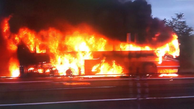日本北海道昨晚有機場巴士於高速公路突然起火,全車焚毀,車上包括司機在內的13人,並無受傷。