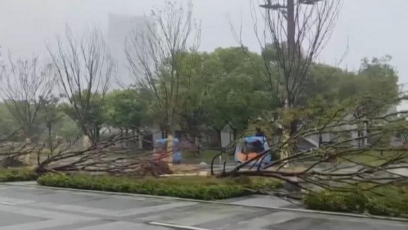 颱風「貝碧嘉」在上海登陸,造成破壞。央視