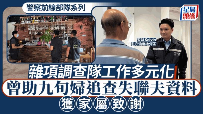 雜項調查隊主要負責調查任何非刑事相關的案件,工作內容相當廣泛和多元化,包括處理電話滋擾、無牌行醫、無牌賣酒等,亦要負責警方接獲的市民求助個案,當中有人近日向警方求助,指希望可以得悉30年前親人過身的位置進行路祭,油麻地分區雜項調查隊的人員迅速回應,仔細追尋當年的資料,雖然最終未能找到確實位置,求助人仍深刻感受到人員的不遺餘力,對此表示由衷感激。