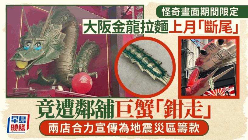 金龍拉麵|大阪名物招牌雕像斷尾後「哭了」 日媒:大阪特有的幽默