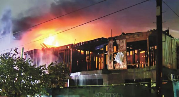 上週五凌晨3點45分左右,火災最初在邦克山大道(Bunker Hill Avenue)和新倉庫街(New Depot Street)之間、毗鄰110號高速公路車道的一棟未完工建築內爆發。未竣工建築的混凝土底座上有許多裸露的木框架,在熊熊燃燒的烈火中逐漸延燒到面向該建築工地的另外三棟公寓樓的數十個單元。市政府官員表示,火災導致51名公寓居民流離失所,且至少其中一棟樓因火災損壞而關閉,並貼上紅色標籤。