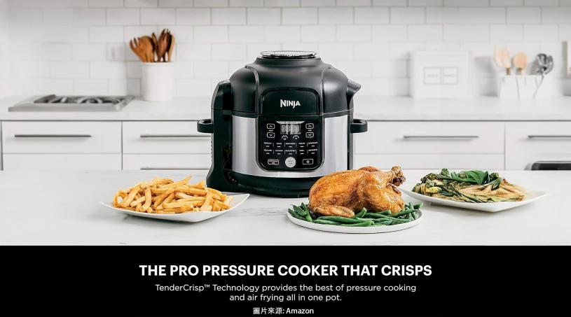 Ninja Foodi氣炸壓力鍋結合了氣炸鍋和壓力鍋的兩大功能,一邊能快速鎖住食材的鮮嫩汁水,一邊還能讓食物外皮變得金黃酥脆,根本不需要來回切換各種電器,一鍋就搞定!一隻5磅的雞直接進鍋,不用費力盯着時間,幾分鐘就能做出外酥里嫩的完美佳餚!這款鍋的容量超大,做個全家人的炸薯條也不在話下。4.6夸脫的Cook & Crisp盤輕鬆炸出足夠一家人吃的量,而且比傳統油炸的方式減少了75%的脂肪!少油還健康,這誰不愛呢?它甚至還能做酸奶、脫水水果,還能用來烘烤、慢煮,功能多到根本用不完,11種可編程模式讓你隨心所欲變換花樣。這台Ninja Foodi能幫你省下大把時間。70%的烹飪時間節省率。