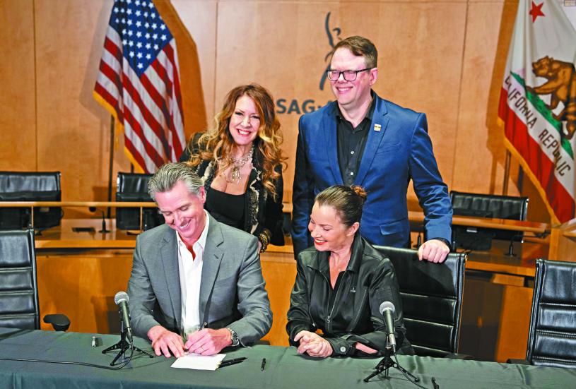 州長紐森17日簽署兩份法案,旨在提供演員更多與數碼肖像相關保障,確保更負責任地使用人工智能(AI)和其他數碼媒體技術,應對美國演員工會(SAG-AFTRA)表演者罷工時所提出的憂慮。