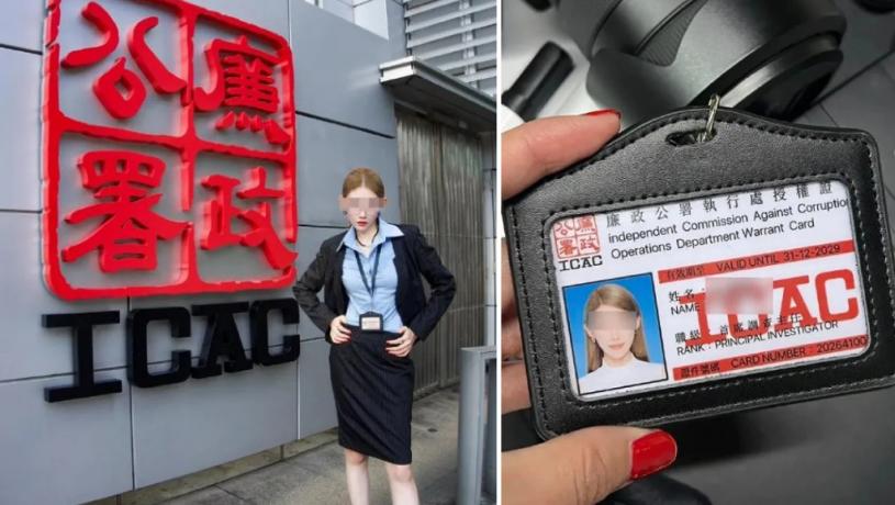 事發於9月初,有網民發現一名博主佩戴疑似香港廉政公署工作人員的證件在香港廉政公署門前拍照,該博主在自己的平台賬號上發布照片,同時還發布其所佩戴「證件」的特寫。其上面除寫網民名字,職位更是「首席調查主任」。而該博主此前在平台上有近5萬粉絲。