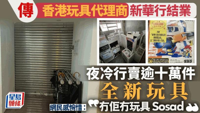 近日玩具界傳出震撼消息,屹立香港逾70年的龍頭代理商「新華行股份有限公司」疑似結業,位於柴灣的辦公室重門深鎖外,逾十萬件的全新玩具則由夜冷行原箱批發出售。多名網民得悉消息後大感惋惜及錯愕,指新華行代理的玩具包括《Bom Bom彈珠人》、《爆旋陀螺》、《妖怪手錶》等陪伴他們成長,充滿童年回憶,又指新華行突然結業,不排除與負責人7月離世有關。