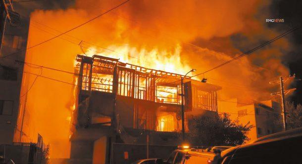 洛市消防局當日到達華埠時,建築物已陷入火海並正在蔓延。LAFD/RMGNews