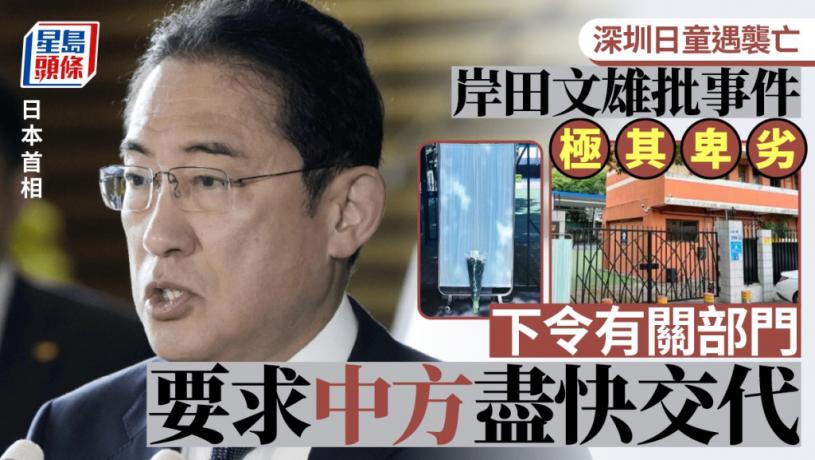 深圳一名日本學童昨日於上學途中被捅,事後重傷不治,事件震驚中日。日本共同社報道,日本首相岸田文雄今日(19日)就事件表示:「這是極其卑劣的犯罪行為。我已經下達指示,讓有關部門儘早要求中方說明案件實際情況。」