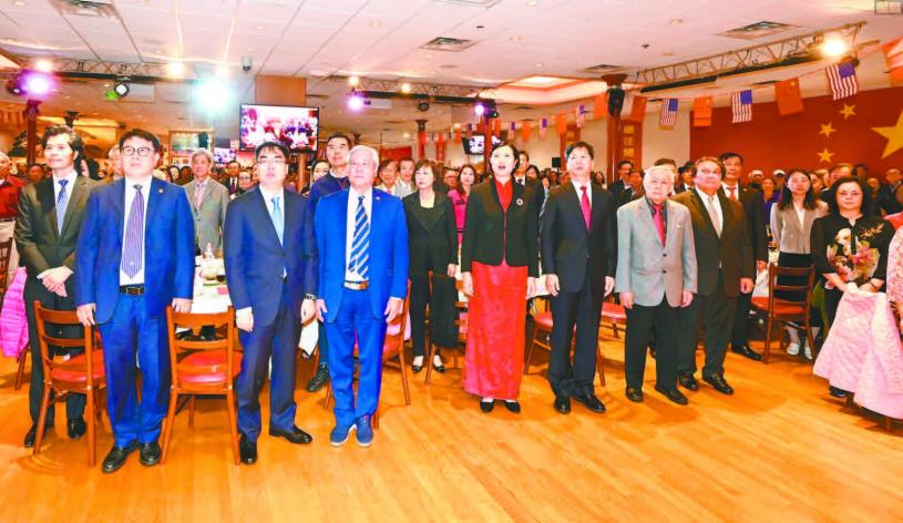 (僑社記者馬紅兵報導 )9月21日晚,慶祝中華人民共和國國慶美國北加州委員會假座華埠康年酒家舉行慶祝中華人民共和國成立75週年晚會。中領館總領事張建敏、總領事夫人鄭心女士、領僑處主任王一鳴、領事姚瑤;三藩市市參事會主席佩斯金;法官鄧孟詩、中華總會館總董暨寧陽總會館主席雷華欽、岡州總會館主席張逢濯、陽和總會館主席陳國慶、三邑總會館主席楊國興、人和總會館主席蔣澤綿、通事劉榮浩;美國華商總會會長孫志雄、常務副會長譚念帖;星島日報美西版社長梁建鋒、中華總商會會長劉運方等僑社領袖、嘉賓友好出席聯歡,共襄盛會。舊金山灣區中國統一促進會理事長池洪湖、副理事長雷振澤、劉源凱、雷華欽;第一副會長黃楚文、第二副會長麥永康等嘉賓出席聯歡。副會長陳兆進、張藍真擔任晚宴司儀。柔功門龍獅團健兒親臨祝賀,瑞獅賀慶。現場奏響莊嚴豪邁之中美國歌,為慶祝晚宴拉開序幕。