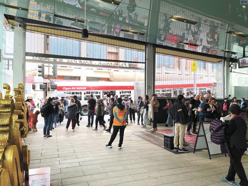 本報記者週一(30日)早上10點左右在華埠白蘭站觀察人流的確興旺,每10分鐘一班的列車準點到站,車站環境 生舒適,空氣通爽。手扶梯和電梯運作正常,民眾出入站井然有序。