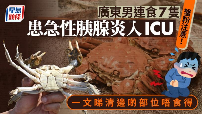 金秋時節,大閘蟹陸續上市,普通螃蟹亦非常肥美,難怪海鮮愛好者難抵美味誘惑。近日,廣東一男子小謝(化名)因連吃七隻螃蟹,最終被送入醫院ICU。