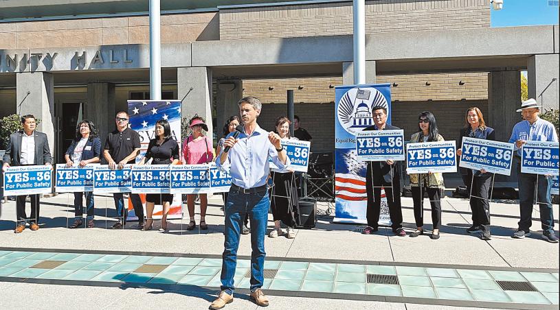 灣區30多位民選官員和華人社區領袖於9月29日下午齊聚古柏蒂奴(Cupertino)市,呼籲選民11月投票支持加州36號提案,獲得現場民眾的熱烈反響。