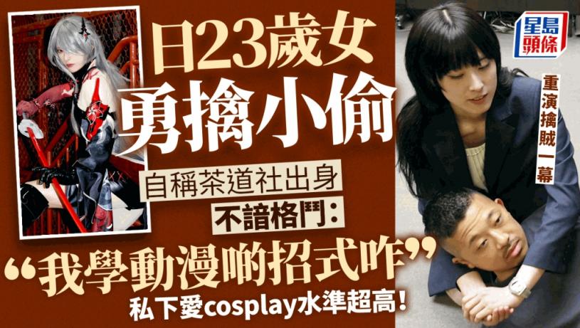 梁果琳在媒體前,重現制伏匪徒的動漫招式。(X@HiroshMatsuur2)