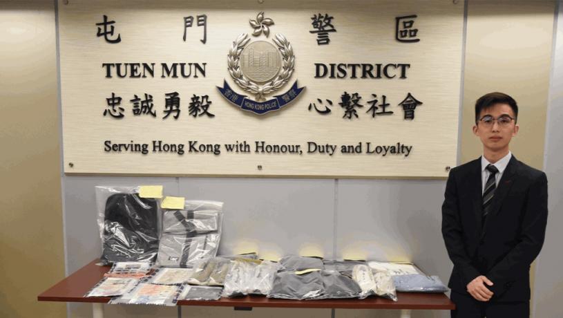警方展示3名被捕人犯案時身穿的衣物。黃文威攝