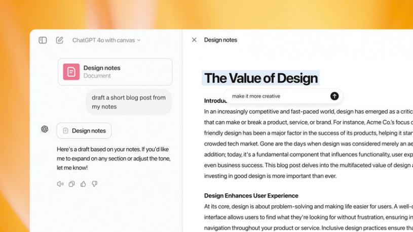 OpenAI本周推出與ChatGPT聊天機器人互動的新方式,稱之為「油畫布」(Canvas),讓用戶直接進行書寫和編寫代碼的項目。新功能已向ChatGPT Plus和Teams推出,即將就輪到Enterprise和Edu用戶。