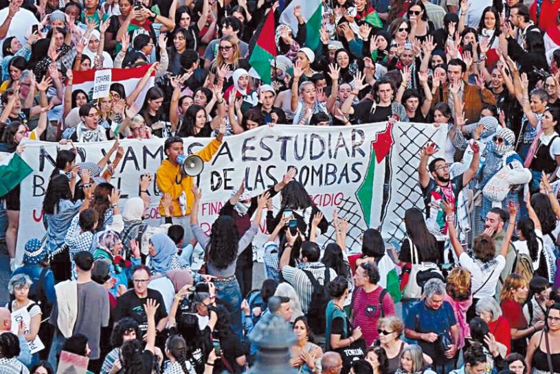 以哈戰爭即將屆滿周年,並蔓延到更廣泛地區之際,多個歐洲城巿5日有親巴勒斯坦民眾示威,要求停火。