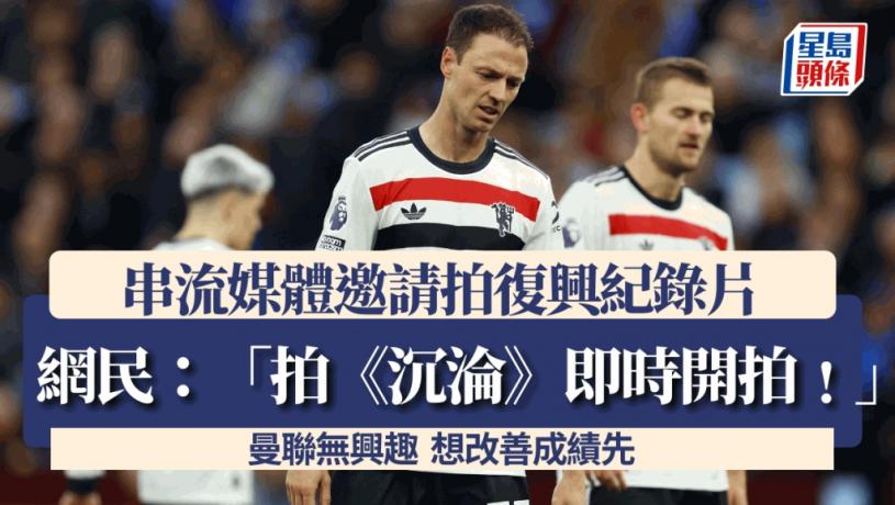 英國媒體近日報導,三大串流媒體巨頭迪士尼、Netflix和亞馬遜,不約而同邀請曼聯拍攝一部關於球會復興計劃的幕後紀錄片,但消息指紅魔暫時沒有興趣,當務之急是提高表現和成績,之後才再作打算。有網民矢言紀錄片可能拍列80集都睇唔到曼聯復興,有人建議改以《沉淪》為主題更合適,亦有球迷指紅魔無興趣有自知之明。