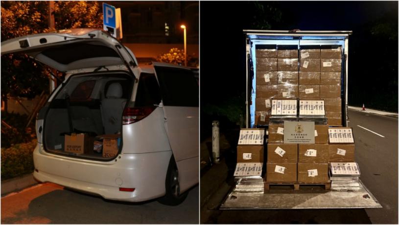 另外海關昨日(10月8日)傍晚在葵涌葵喜街路邊截查兩輛貨車,於其中一輛貨車上搜出約127萬支懷疑私煙,並拘捕兩名30歲及46歲、正在搬運貨物的男子,分別報稱司機及物流工人。經初步調查後,海關人員當場再拘捕一名31歲報稱無業的女子作進一步調查。該批香煙約值逾570萬元,應課稅值約420萬元。海關仍在調查的來源及去向。3名被捕人士現正保釋候查。