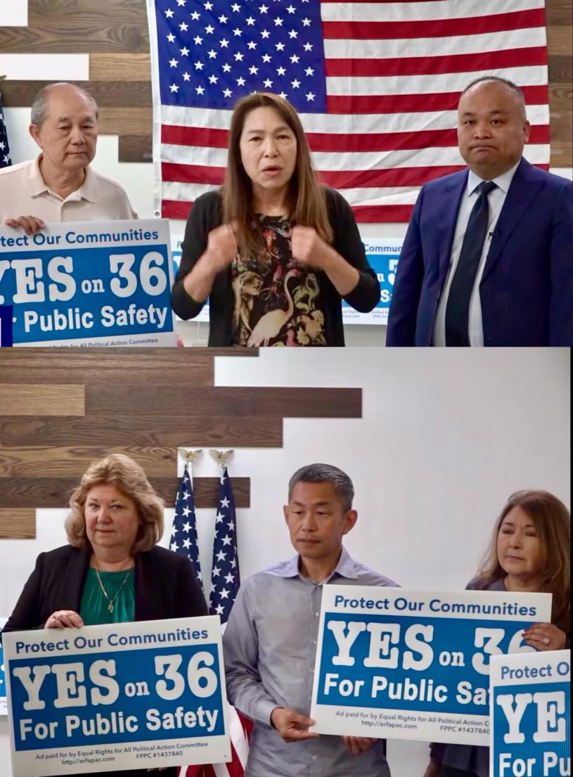 10月8日,多位南加民選官員、候選人以及社區代表,來到鑽石吧市為加州36號提案(Proposition 36)聲援支持。到場人士一致呼籲:覺醒時刻到了,為了社區的安全和未來,請大家投票支持加州36號提案,以抵制欺騙、毒害加州十年的47號提案。