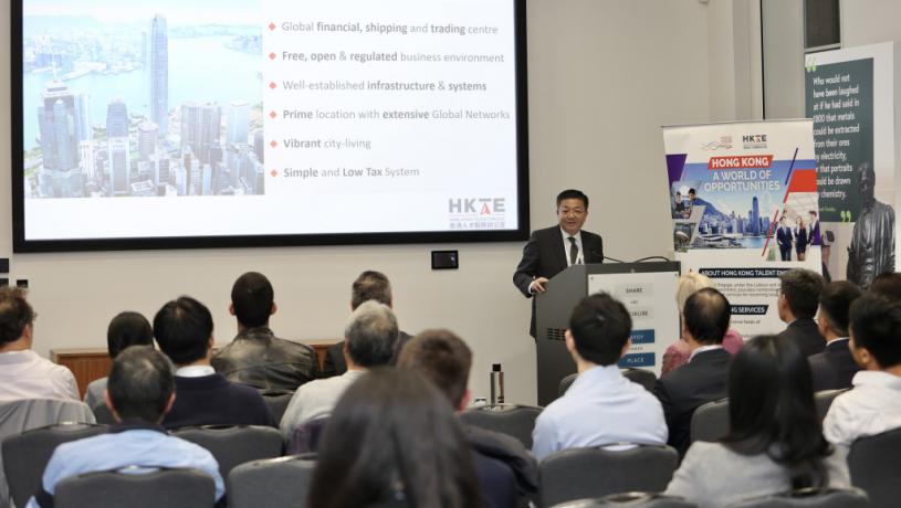 劉鎮漢9月底率領代表團前往英國,除與包括牛津大學和劍橋大學等5家世界百強大學院校代表交流外,也聯同國際工程技術學會推廣香港一系列招攬人才措施,並邀請兩位落戶香港發展的英國人才,分享在港生活和工作的經驗。