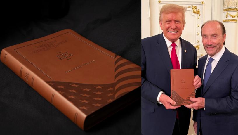 特朗普3月在Truth Social發布影片說,每個美國人家裡都需要有一本這樣的書,這是他「最喜歡」的一版《聖經》,推薦其支持者購買,「我們必須讓基督教回到我們的生活中,帶回一個偉大的國家」。最近,這本《天祐美國聖經》的59.99美元版本還更新了封面,用於紀念特朗普7月遭「未遂刺殺」一事,並將特朗普遇刺當天稱為「上帝干預之日」。