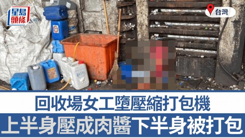 台灣雲林斗六市發生恐怖奪命意外。今日早上9時許,當地一間回收公司1名女工掉落壓縮打包機,上半身被壓成肉泥死亡。消息指,現場血肉橫飛,女工死狀恐怖。職安署中區職安衛生中心表示,派員到現場調查,將勒令停工開罰。