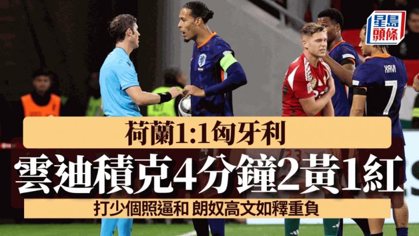 周五歐國聯A3組賽事,荷蘭初段已失守,末段更有中堅華基爾雲迪積克於4分鐘內2黃1紅被逐,不過他們於完場前成功靠杜費斯士哥追平,作客打和1:1。賽後,荷蘭主帥朗奴高文矢言早料到最終能逼和。