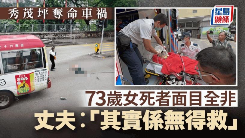 73歲姓陳老婦周三(9日)在秀茂坪過馬路期間遭一輛駛至的小巴撞及,送院搶救後至翌日(10日)晚上不治。陳婦的丈夫胡先生表示,懷疑小巴衝力過力過大,妻子被撞到面目全非,送院時情況危殆,「老婆死前個樣都唔似(人)個樣喇已經,衝力大過頭,醫生同我講腦、胸、骨、肚,全部入面都有嘢,其實係無得救㗎喇」。對於司機涉酒駕被捕,他希望政府可以嚴格執行醉駕的刑罰,又指會追究到底,為妻子討回公道。