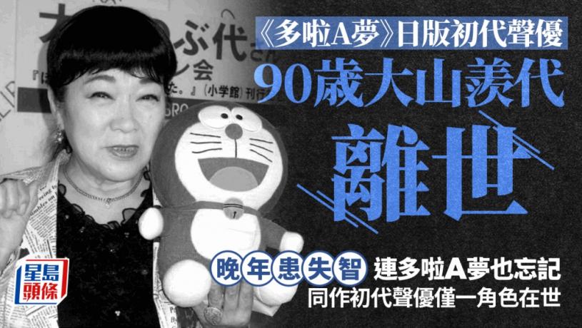 日媒報道,日本長壽經典人氣動畫《多啦A夢》的第一代配音員「大山羨代」辭世,享年90歳。大山羨代以聲音演活多啦A夢(舊名「叮噹」)角色,為許多人的童年帶來無數快樂回憶,惟她晚年受疾病煎熬,更患上失智症,最後連多啦A夢都忘記了。