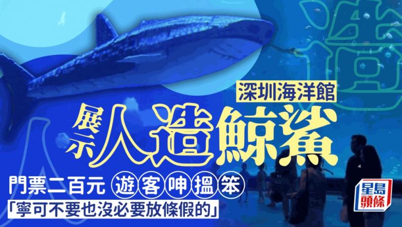 深圳「小梅沙海洋世界」展出人造鯨鯊,引發爭議。