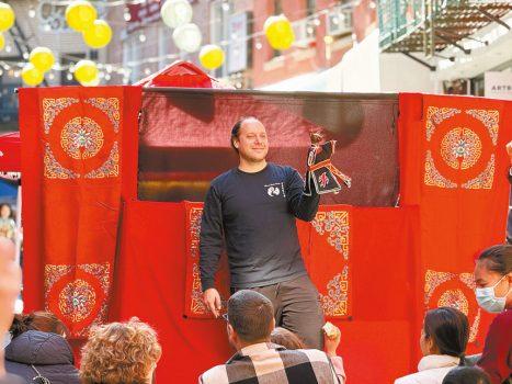 當日的演出舞台一如既往設置在了披露街夾宰也街(Doyers St)處。由紐約美華劇坊在小小的紅帳前帶來了一場又一場中國傳統文化故事的布袋演出,不僅吸引了諸多小朋友的目光,也以獨特的演出方式令許多外族裔遊客駐足觀賞。