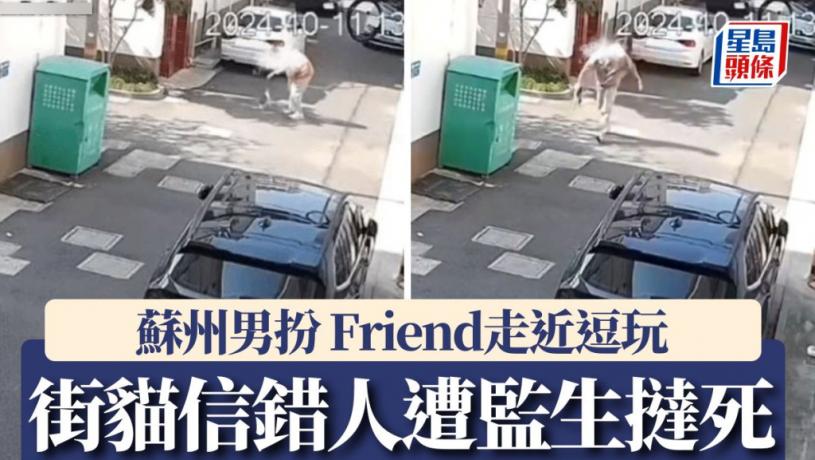 極目新聞報道,網上流出一段發生在10月11日江蘇蘇州的閉路電視片段,顯示在一條後巷,有一名男子走近一隻路中的街貓,假裝親切伸手向貓咪逗玩。