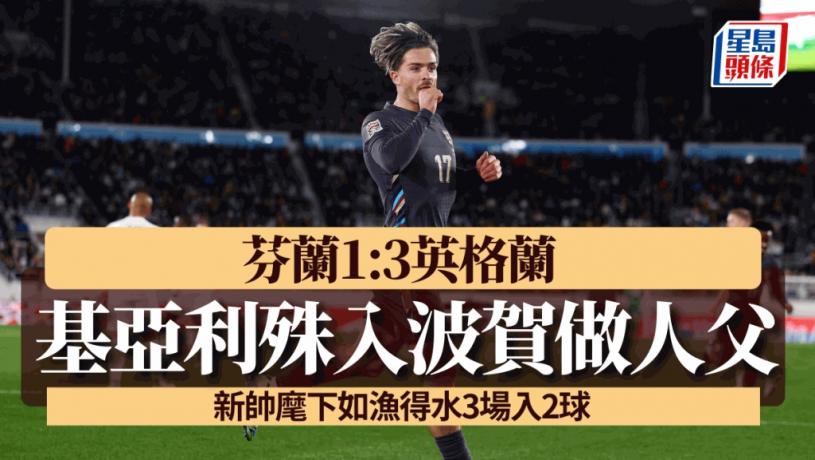 上場不敵希臘的英格蘭周日歐國聯回歸4231陣式即反彈,作客3:1擊敗芬蘭。其中基亞利殊復任正選即攻入1球,令他在暫代領隊卡斯利麾下3戰已入2球,明顯如漁得水,而他士哥後就做出「啜奶嘴」慶祝動作,賀自己剛做人父。