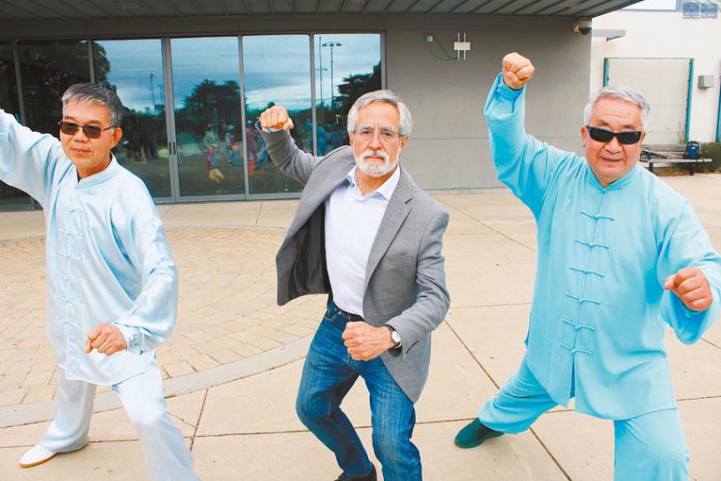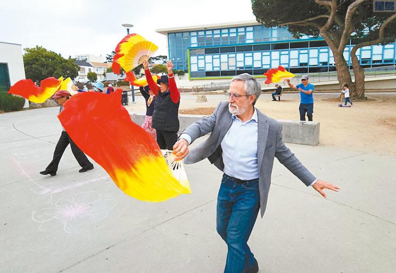 佩斯金(Aaron Peskin)或許是三藩市非華裔政客裡中國舞跳得最好的,不信你看他在日落區學習廣場舞的舞姿。華埠所在第三區市參事佩斯金為競選市長每天都行程滿滿,星期六(12日)本報記者全程跟訪他,從早到晚穿梭市內不同地區,參加至少8場活動。