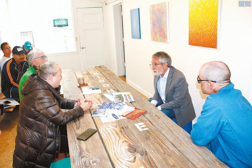 選民見面結束已經下午四點多,普通人八小時工作結束,但佩斯金的行程還繼續,包括第十區市參事麥斯威(Sophia Maxwell)為他舉行競選派對,晚上還要出席另一場晚宴並擔任司儀。
