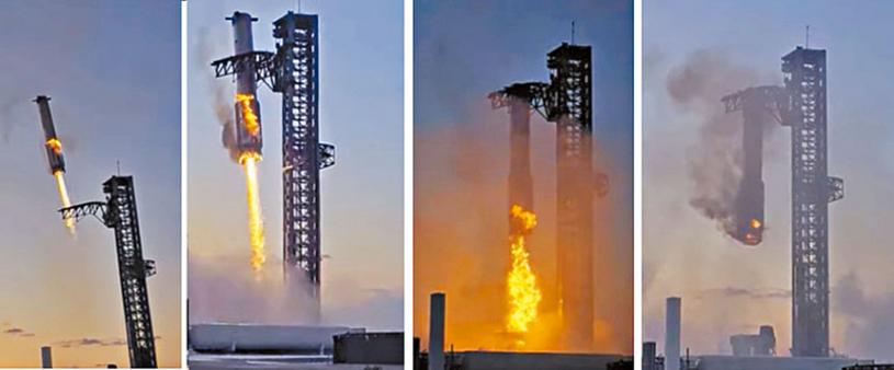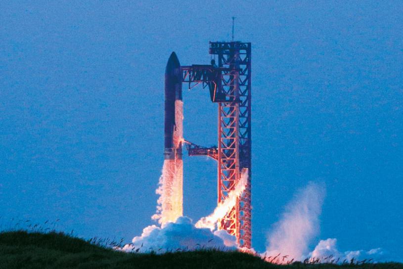 美國太空探索技術公司SpaceX的新一代重型運載火箭「星艦」13日第5次試飛,首次使用發射塔上被稱為「筷子」的巨大機械臂成功「夾住」返回地面的助推器,上演「筷子夾火箭」,歷史性首次實現在半空中捕獲回收的創舉。