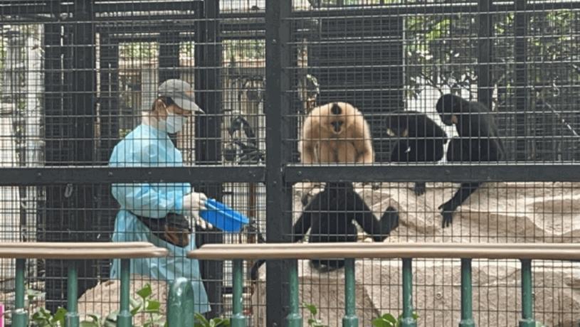 有職員餵飼猴子時,亦需穿上保護衣。資料圖片