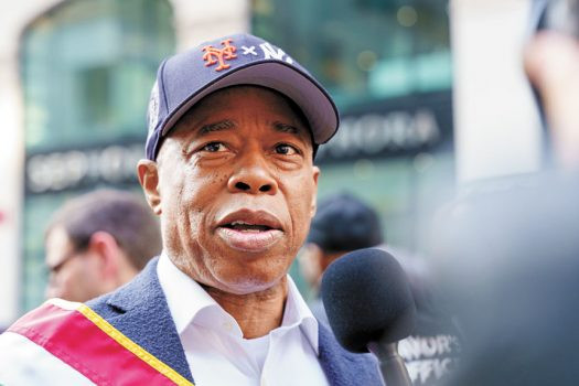 市長亞當斯在哥倫布日遊行中戴上一頂棒球帽,上面同時印有紐約大都會隊(New York Mets)和洋基隊(Yankees)的標誌,似乎一下子「激怒」了全紐約市。