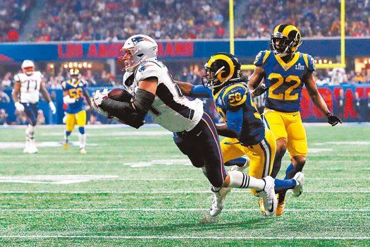 2019年,愛國者隊在亞特蘭大以13:3戰勝公羊隊,贏得了他們的第六個超級碗冠軍。湯姆.布萊迪21傳35中,傳出262碼。其中大部分碼數都傳給了外接手、「超級碗最有價值球員」朱利安.埃德爾曼,他衝球10次,共推進141碼。