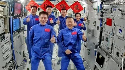 神舟十九號及神舟十八號6名太空人中國太空站「會師」。 央視截圖