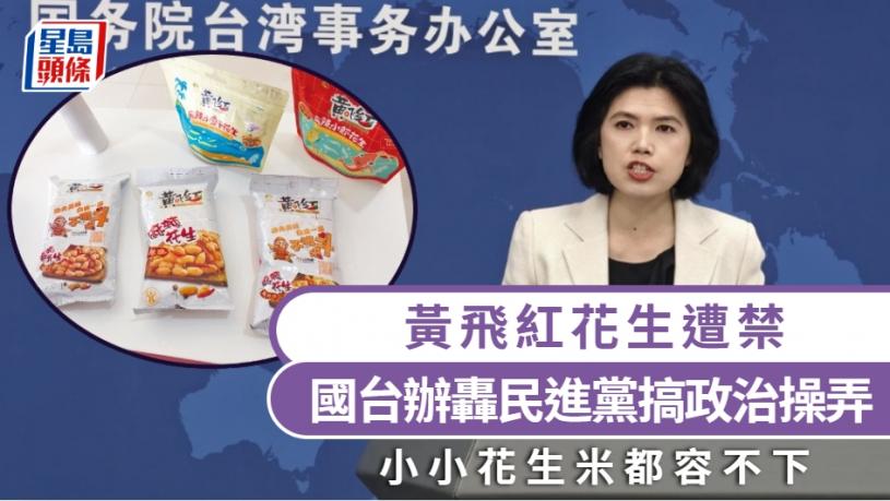 大陸人氣零食「黃飛紅花生」日前被民進黨當局以「保護台灣相關產業」為由禁止輸台和售賣。台灣民眾對此表示不解,還有網友在社交媒體分享照片表示「正在偷吃」。國台辦發言人朱鳳蓮今天(30日)在例行記者會中回應,民進黨政府至今仍單方面限制大陸1000多項農產品輸入台灣,阻礙兩岸農產品貿易的正常進行,甚至一味進行政治操弄,已經到了連小小花生米都容不下的地步。
