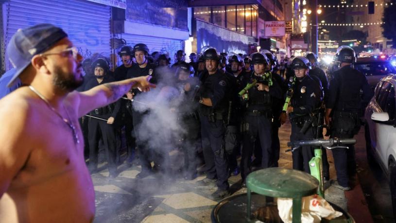 警方表示,試圖驅散喧鬧人群的警察,被投擲石塊、瓶子和煙火。警方呼籲民眾小心,遠離混亂區域。洛杉磯市長巴斯(Karen Bass)警告,「暴力行為不會被容忍」。