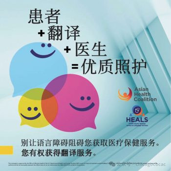 華埠更好團結聯盟(CBCAC)本期的系列文章的內容主要來自亞裔健康聯盟(Asian Health Coalition),他們是一個致力於提昇美國亞裔群體醫療保障水平的非營利組織。本系列文章將介紹醫療環境中的語言輔助服務,幫助大家更好地了解如何在美國的醫療繫統中獲取所需的語言支持。希望通過這些內容,讓每位讀者都能為自己的健康建立起溝通的橋梁。