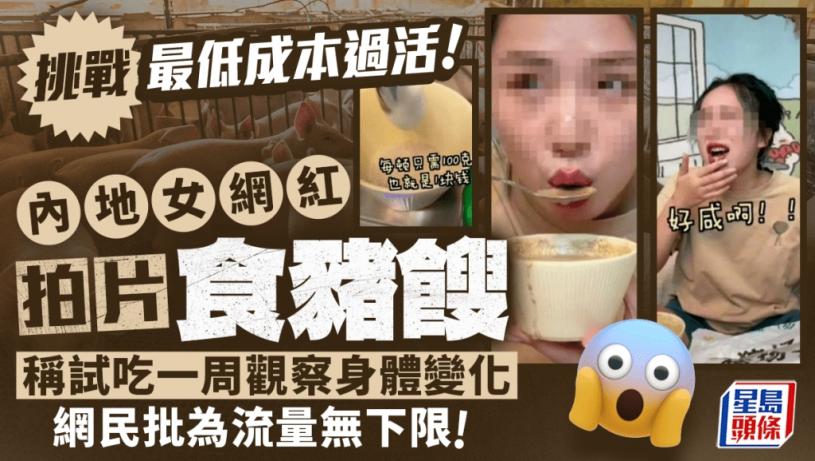 近日一名擁有百萬粉絲的女網紅拍視頻稱,為挑戰用最少的錢維持生活,將每天只吃3元(人民幣,下同)的豬飼料。在對着鏡頭嘗了一口後,她高喊:「好鹹!」相關影片被質疑是「博流量」,抖音平台回應稱建議舉報。