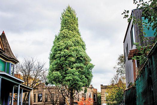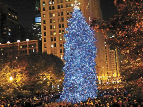象徵芝加哥官民慶祝聖誕佳節的聖誕樹,來自羅根廣場的54英呎高的藍杉樹。 網上照片