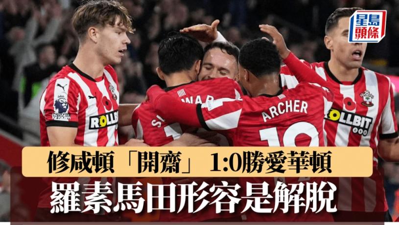 英超聯經過10輪賽事後,升班馬修咸頓終於開齋,周六主場對愛華頓憑前鋒阿當岩士唐射入全場唯一的入球小勝1:0。修咸頓全取3分之後,於聯賽榜以1分超越狼隊微升1 級到尾二,暫時脫離榜尾。修咸頓領隊羅素馬田賽後形容是解脫!